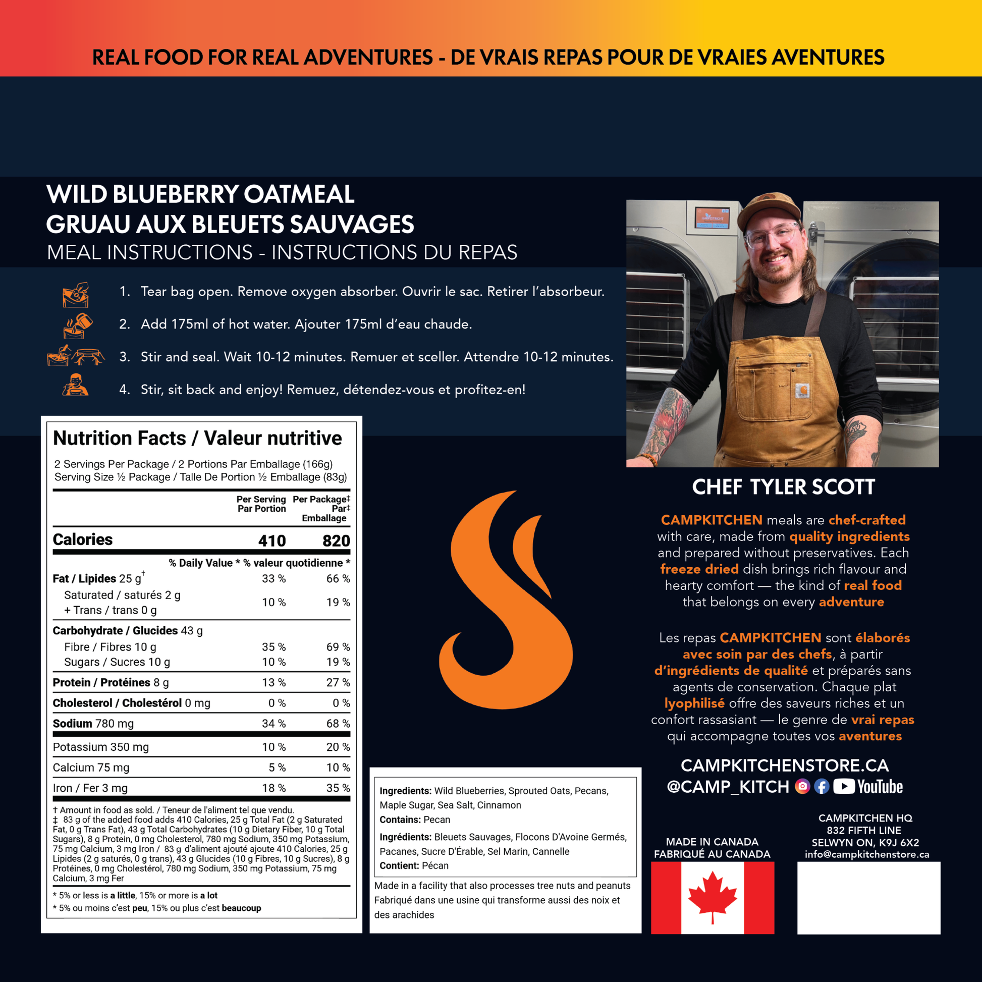 This isn’t your average instant oatmeal. CAMPKITCHEN Wild Blueberry Oatmeal is a rich, hearty freeze-dried meal made with real, thoughtfully chosen ingredients that deliver deep flavour and lasting satisfaction in every bite.
